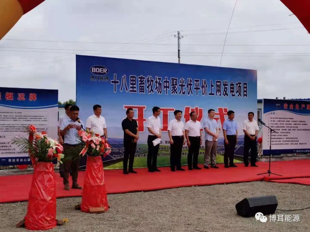 2021年7月15日上午,由博耳能源主持建設(shè)的黑龍江省十八里畜牧場中聚光伏50MW 平價上網(wǎng)項目正式開工!